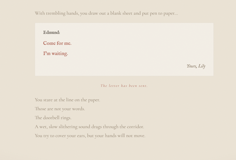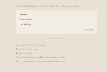 | Tags | dark-romance, epistolary, Female Protagonist, literary, Multiple Endings, Mystery, Psychological Horror, Text based |
